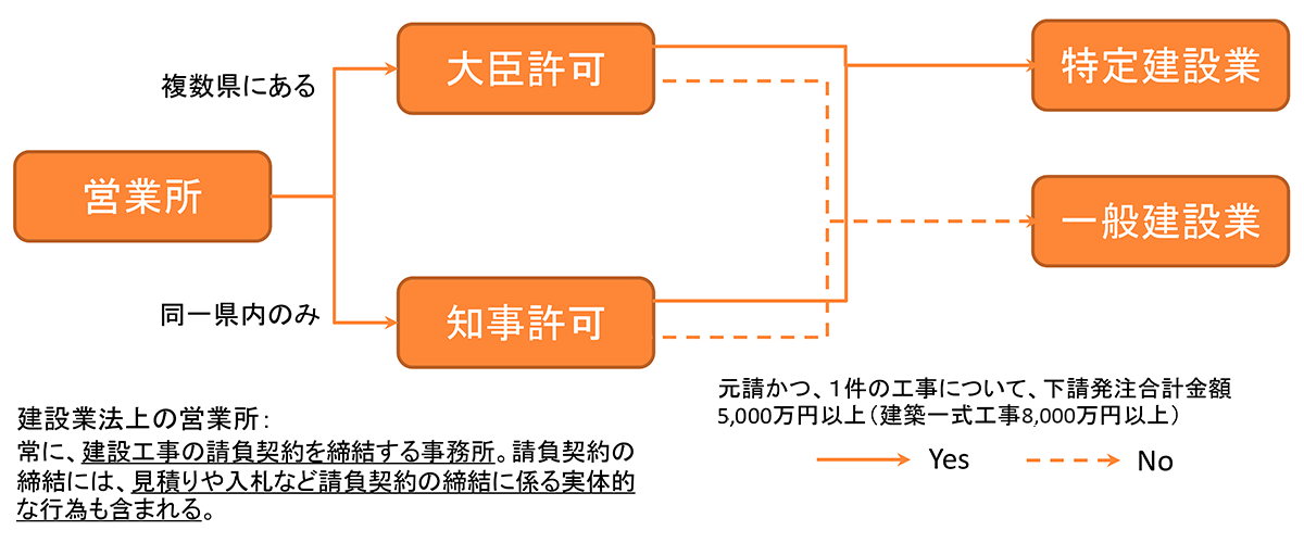 知事許可は、都道府県の土木事務所等の所管窓口,大臣許可は主たる営業所所在地の国土交通省各地方整備局です。